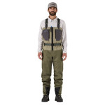 Scuff guards around the ankles add protection where waders take the most abuse. The anatomical booties are low-bulk with a “sock-like” fit for all-day comfort inside wading boots.