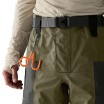 The expandable waistband makes on/off easier and fits comfortably over base layers. The included SecureStretch wading belt supports tools and accessories without sagging.